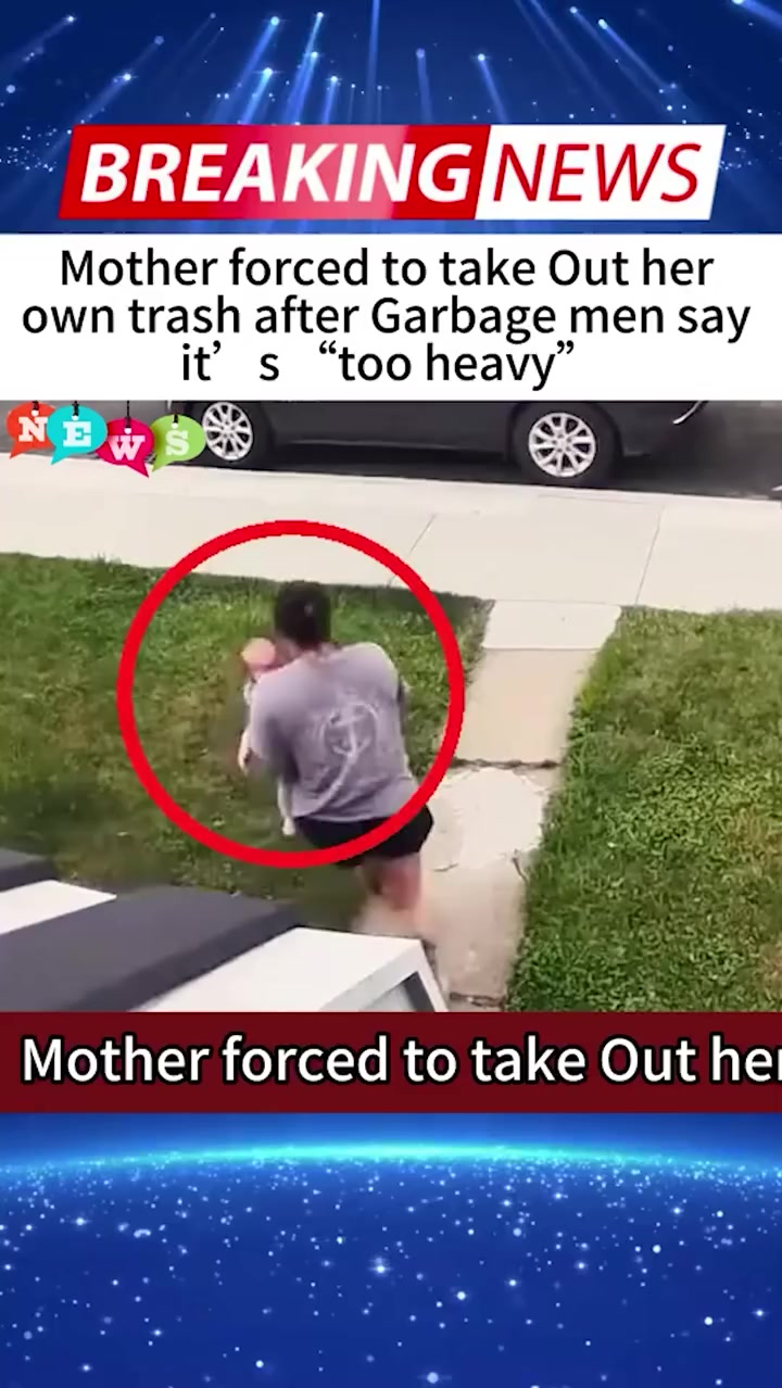 A routine trash day turned unexpectedly viral after a security camera captured the moment a frustrated mother was forced to drag her own garbage bin back to the curb — after the garbage collectors allegedly refused to take it, claiming it was “too heavy.”