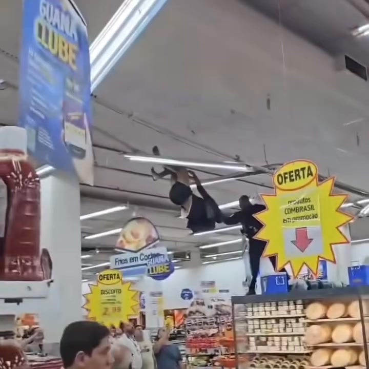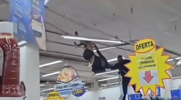 the footage begins with a shaky zoom shot from a bystander’s phone, capturing the roof of a supermarket in rio de janeiro where a lone man stands dangerously close to the edge. below him, a growing crowd gathers, murmuring anxiously and pointing upward as police vehicles pull into the parking lot. the heat shimmers off the concrete, and the tension is unmistakable from the very first frame. the man on the roof paces back and forth, shouting incoherently, refusing to respond to anyone calling up to him.