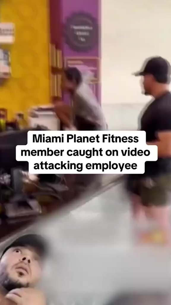 The viral clip, recorded inside a Planet Fitness location in Miami, shows a tense exchange near the front desk that quickly escalates. In the footage, a gym employee wearing the brand’s signature purple uniform appears to be doing his job when the situation suddenly takes a dark turn. Witnesses say the member became visibly agitated, raising his voice and moving toward the employee in a threatening manner.