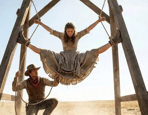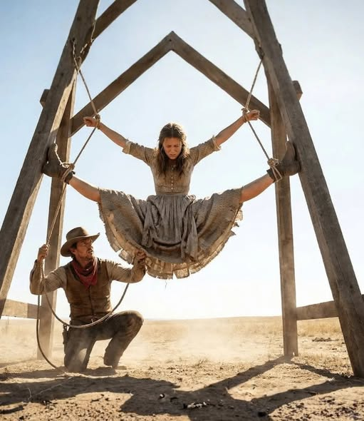 The ropes cut into her wrists, leaving angry marks on her skin, and the cold wind whipped her hair against bruises that revealed she had faced far more pain than any accusation could justify.