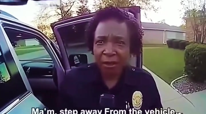 Bodycam footage from the incident shows the woman standing near her truck in a quiet residential neighborhood, calmly placing grocery bags inside. Moments later, patrol officers approach her, questioning what she is doing and why she is there. At first, the interaction appears tense, with the woman visibly confused by the officers’ tone and commands.