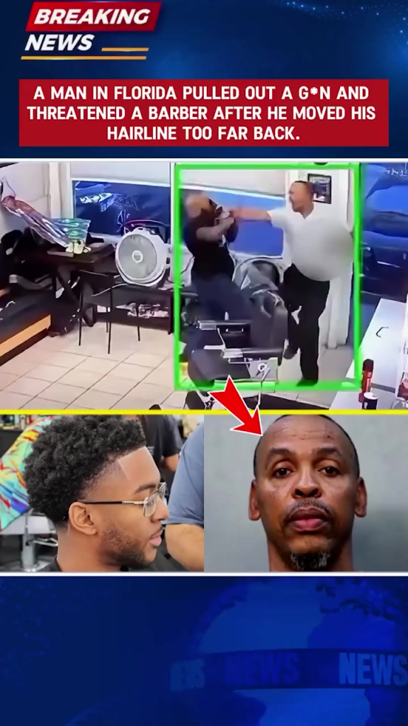A shocking incident out of Florida has gone viral after surveillance footage captured a man pulling out a g*n and threatening a barber over what he claimed was a “messed-up hairline.” The bizarre confrontation, which unfolded inside a small neighborhood barbershop, has stunned viewers across social media and reignited debates about customer aggression and workplace safety.