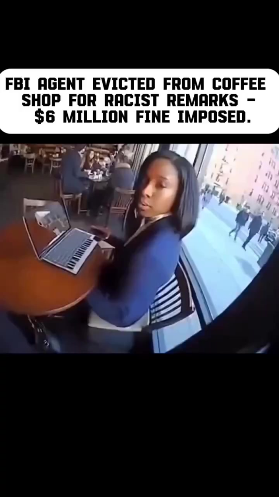 According to the viral narrative spreading across social media, the woman was an FBI agnt who was asked to leave the coffee shop following alleged rcist remarks. The on-screen text claims the situation didn’t end at embarrassment or removal — instead, it allegedly escalated into a massive $6M fine, sparking outrage, debate, and disbelief across the internet.