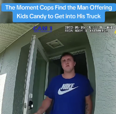 A chilling bodycam video has gone viral after showing officers confronting a man accused of offering candy to neighborhood kids in an attempt to convince them to approach his truck — a situation that quickly turned into one of the most alarming police encounters of the week.