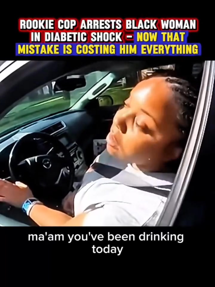 What should have been a medical emergency turned into a devastating mistake that shocked viewers across the country. In the video now circulating online, a rookie police officer arrests a Black woman who is clearly experiencing diabetic shock. Instead of receiving urgent medical care, she is treated as a suspect — a decision that would later trigger outrage, legal consequences, and the potential end of the officer’s career.