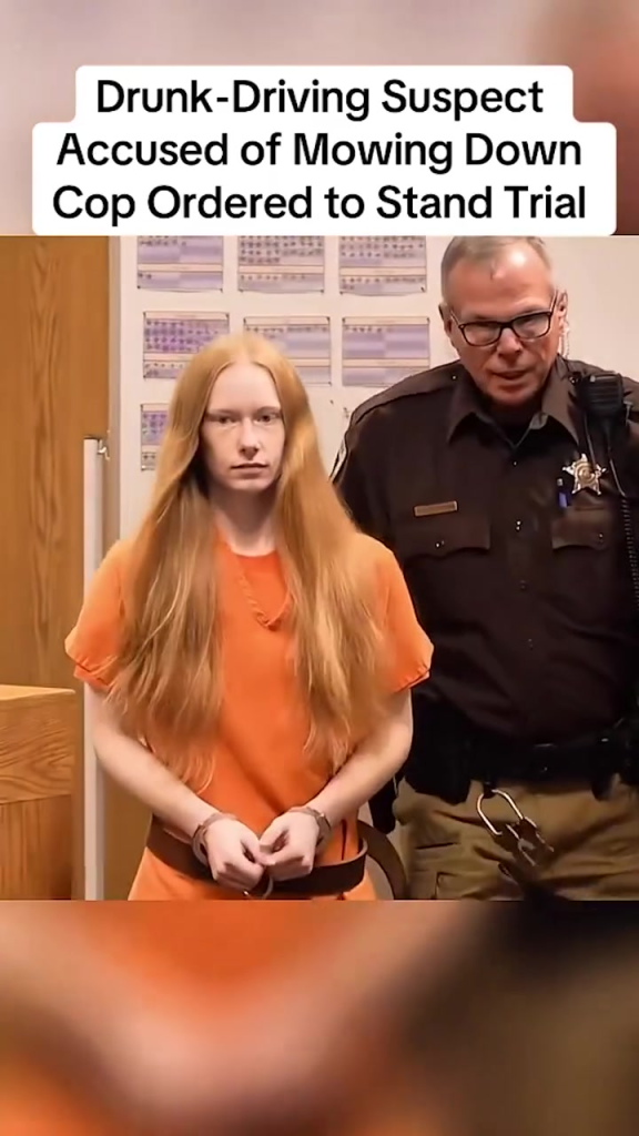 A tense moment inside a packed courtroom has gone viral after cameras captured the instant a young woman facing serious DUI-related accusations was officially ordered to stand trial. The suspect, wearing an orange jail uniform and standing beside a deputy, listened closely as the judge confirmed that the evidence against her was strong enough to proceed. The charge: allegedly m*wing down a police officer during a late-night incident that left the community stunned.