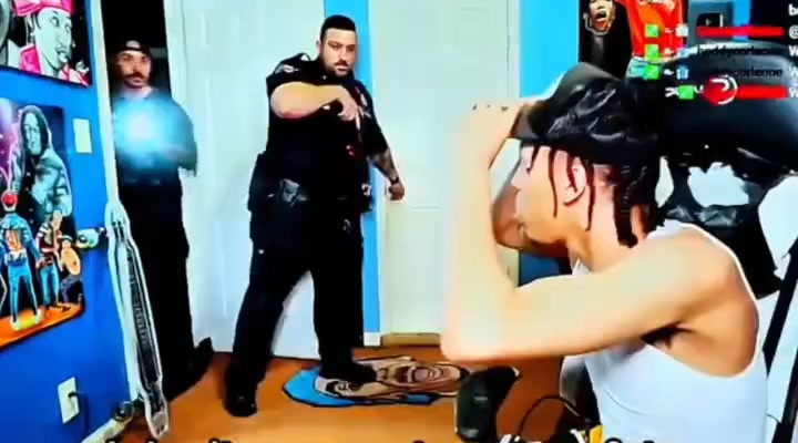 Off-camera voices are heard. The streamer looks confused. Moments later, police officers enter the frame. The atmosphere shifts instantly from relaxed to tense. Viewers initially assume it might be staged — a prank, a skit, or content designed for shock value.