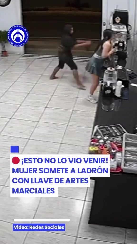 The video shows the suspect attempting to make his move near the counter, likely assuming the situation would be easy and uncontested. But within seconds, everything spiraled out of control. The woman confronted him head-on, and before he could react, she executed a fast, precise takedown straight out of a martial arts training session.