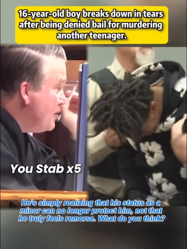 After the judge announced that he would remain in custody, the teenager broke down in tears. His reaction revealed the heavy emotional toll of facing serious legal consequences at such a young age.