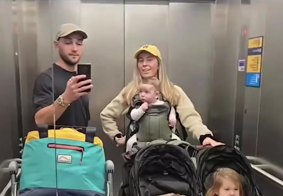 The image shared online shows the couple smiling together with their children, surrounded by strollers and travel gear. To many viewers, it looked like a familiar scene: parents juggling babies, bags, and the emotional weight of traveling with very young kids. But according to captions shared with the post, some passengers on their flight felt differently.