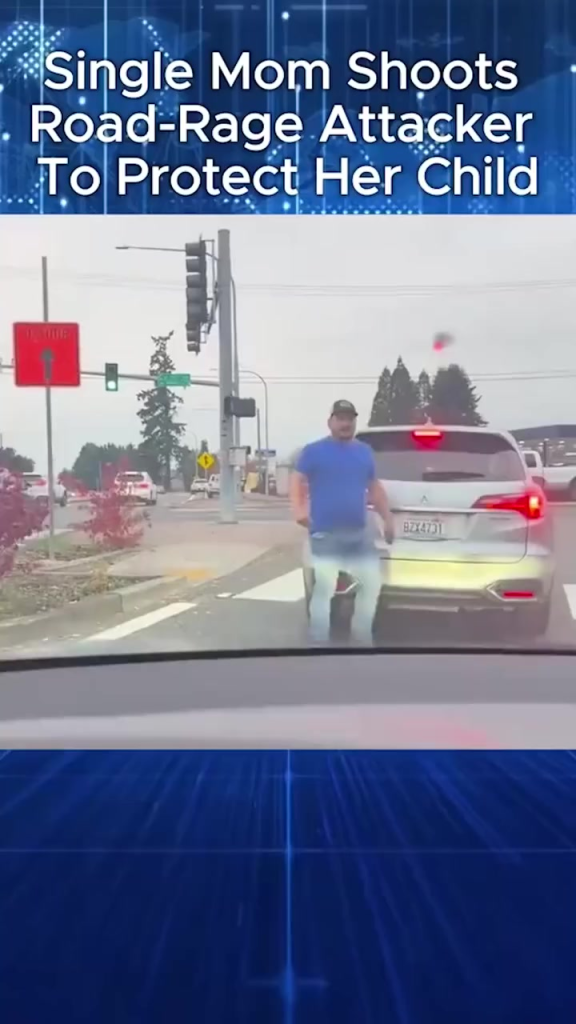 In a heart-stopping moment caught on dash-cam, a quiet evening drive turned into a terrifying showdown when a single mother found herself face-to-face with an enraged driver who allegedly targeted her vehicle while her young child was inside. The dramatic clip, now spreading across social media like wildfire, shows the shocking seconds leading up to an act of desperate self-defense that has left millions debating what truly counts as “protecting your own.”