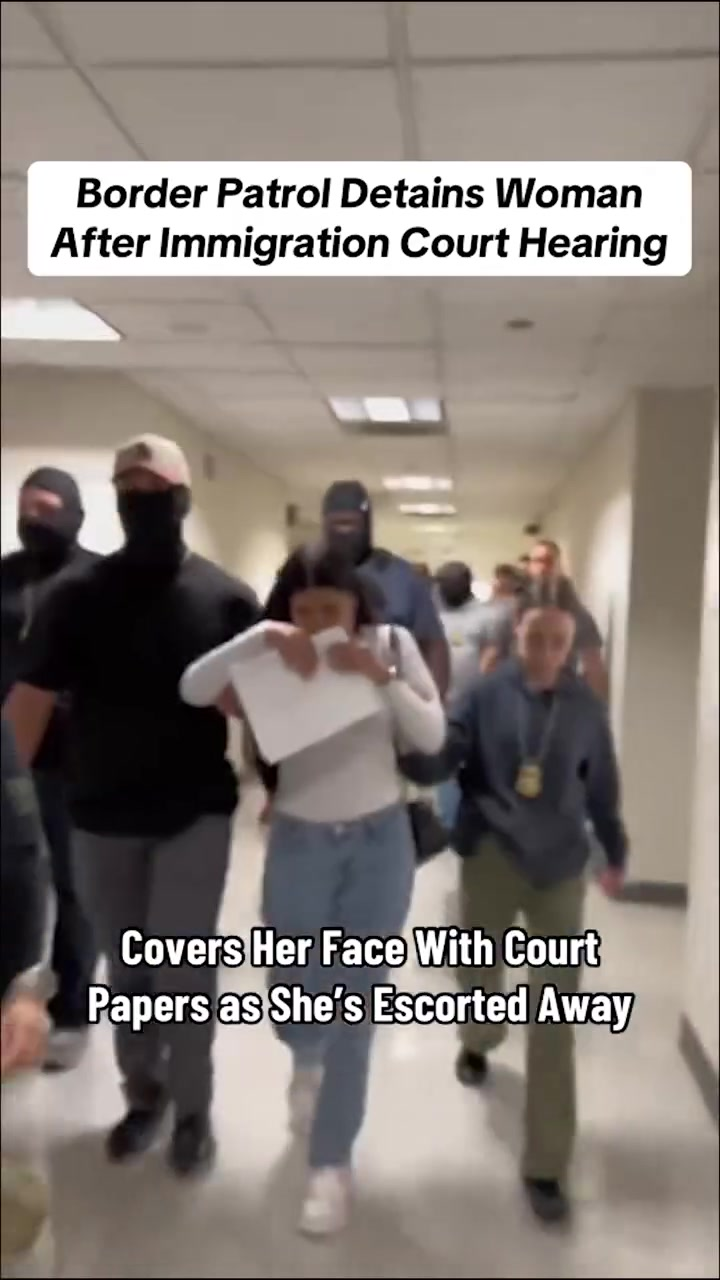 A tense and emotional scene unfolded in a U.S. courthouse when Border Patrol agents detained a woman immediately following her immigration court hearing. Video of the incident, which has since gone viral, shows the woman being escorted down a hallway by masked officers as she hides her face behind a stack of court papers.