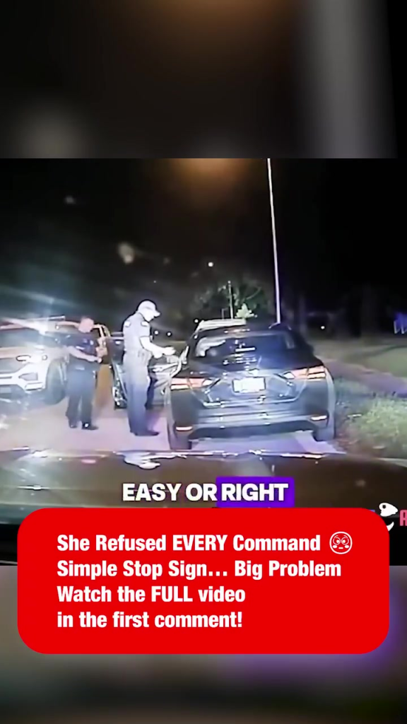 A routine traffic stop escalated rapidly after a woman ran a stop sign and refused to comply with repeated police instructions. The incident, captured on video, began with officers attempting to conduct a standard roadside check after witnessing her traffic violation. What should have been a quick conversation quickly turned into a tense standoff.