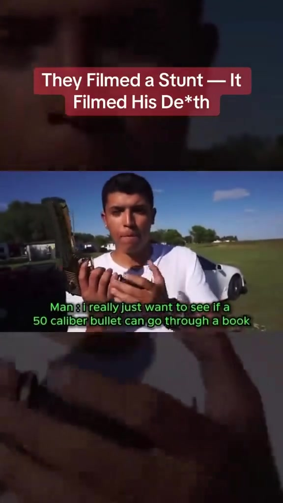 The footage, now widely shared online, shows a young man preparing for what he believed would be a controlled stunt. According to captions and audio circulating with the video, the goal was to test whether a powerful object could pass through a book — an idea inspired by curiosity and the desire to capture something dramatic on camera.