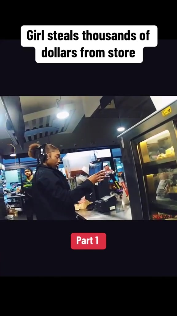 In one clip, the young woman can be seen working the register as usual. Moments later, when no customers were around, she discreetly opens the drawer and removes a stack of bills, quickly concealing them. Her movements were calm and calculated — as if she’d done it before.