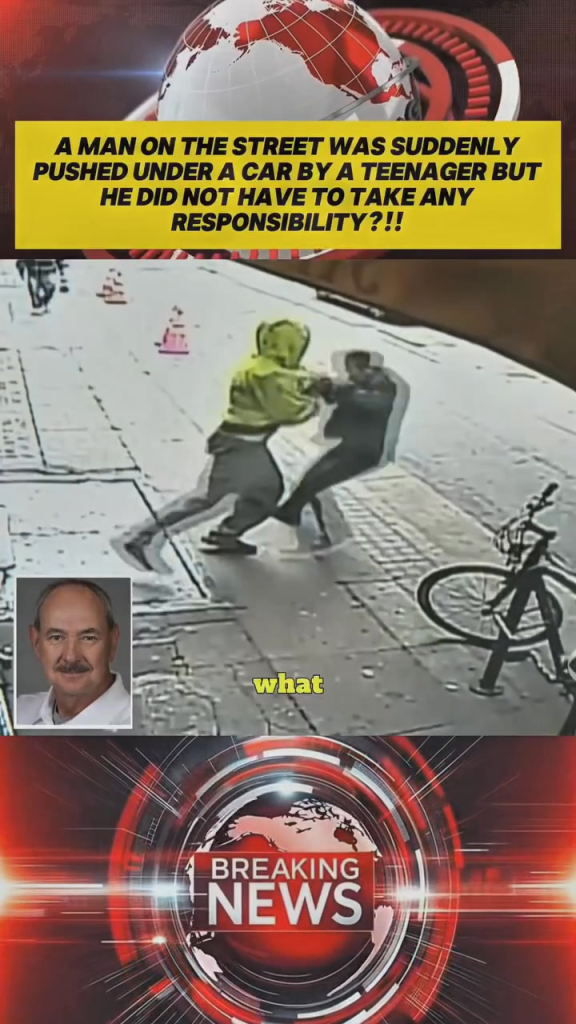 In a blink the passerby is pushed toward the road sending gasps through anyone watching the footage. The suddenness of the moment feels surreal as if reality itself paused then snapped in half.