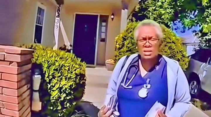 The quiet front yard of a neat suburban home became the center of an unexpected confrontation when a doctor, still in her medical scrubs after a long shift, was told by an officer that she needed to leave the property—her own property.