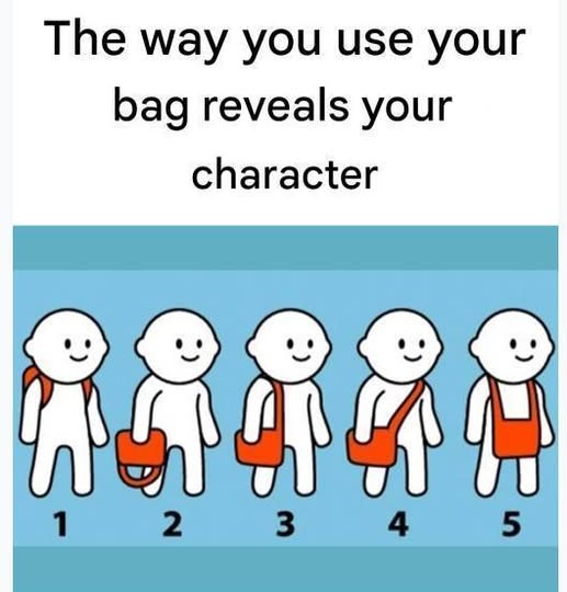 If you prefer carrying your bag in your hand, this reveals a commanding presence and a strong sense of control. You likely value order and enjoy being in charge of your surroundings. This method of carrying a bag is common among individuals who are detail-oriented and thrive in environments where they can exercise their organizational skills.
