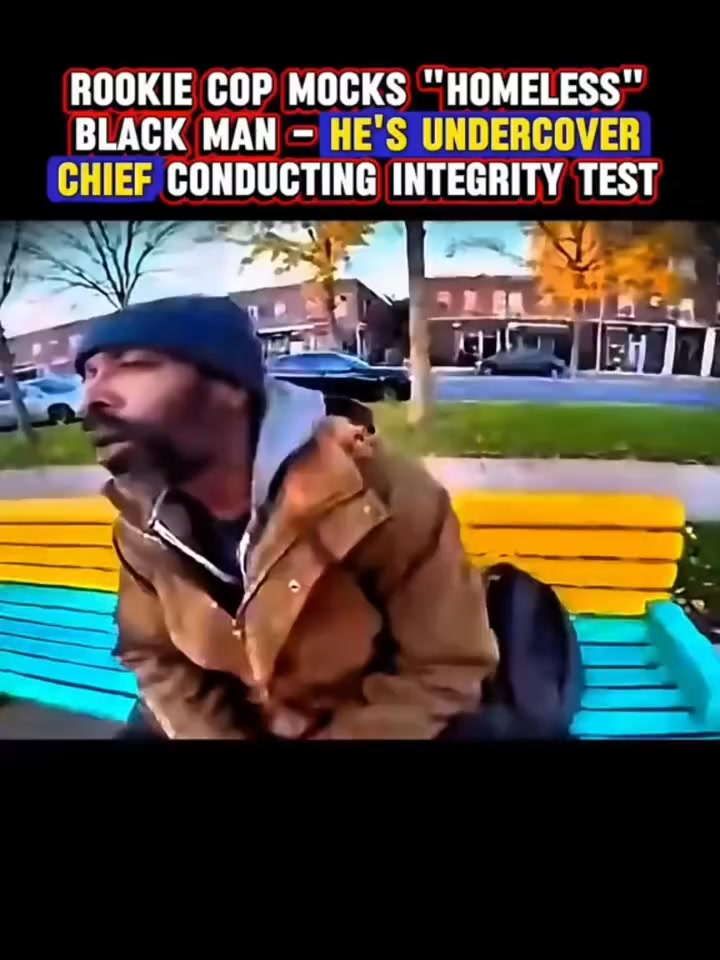 What looked like a routine street encounter quickly turned into a career-defining moment for a rookie police officer. In the video now circulating widely online, an officer approaches a Black man he assumes is homeless and treats him with open disrespect. What the officer does not realize is that the man is not homeless at all — he is the city’s police chief, operating undercover as part of an internal integrity test.