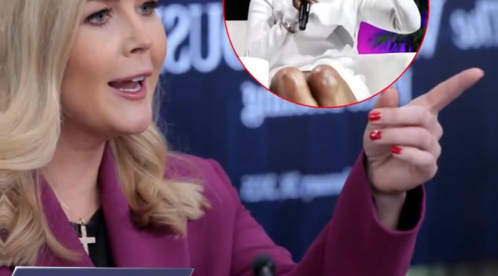 Across the stage sat Caroline Leavitt, the 27-year-old White House Press Secretary. No flash, no theatrics—just the uniform of someone who lived in briefing rooms: navy blazer, white blouse, pearl earrings. A manila folder sat in front of her, innocuous but loaded. The age gap was stark, but the real divide was one of preparation.