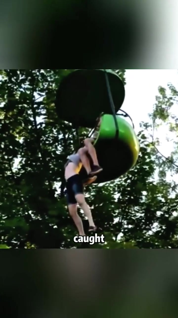 The footage shows the girl losing her grip, slipping from the ride, and plummeting toward the ground. In an incredible display of bravery, the father caught her mid-air, absorbing the impact as others helped cushion the fall. Miraculously, the girl survived with injuries far less severe than many feared, thanks to the fast reaction of the rescuers.