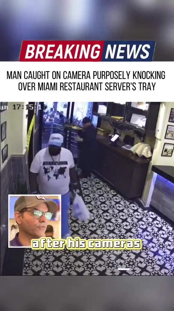A Miami restaurant has become the center of a heated online firestorm after security footage captured a man deliberately knocking over a server’s fully loaded tray of food. The incident, caught on the restaurant’s surveillance camera, has sparked outrage across social media, with thousands demanding accountability for what many are calling “one of the most disrespectful acts ever caught on tape.”
