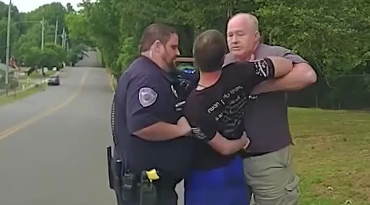 Social media users have been replaying the clip over and over, noting that the chief’s involvement changed the tone of the encounter completely. With decades of experience behind him, he uses a controlled hold that secures the suspect without unnecessary force. The rookie officer, who appears visibly relieved, follows the chief’s lead as the situation begins to settle.