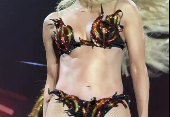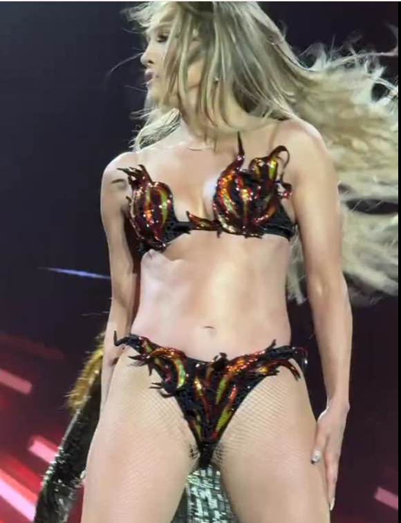 Jennifer Lopez performs in a thong bikini