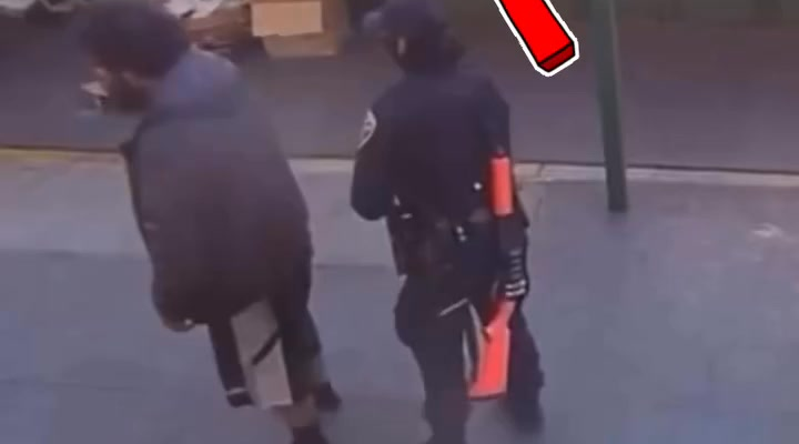 He obliged, but when the officer asked if he had any weapons in his possession, he turned around, shoved her and wrestled with her before pushing her to the ground. She was carrying a bean bag gun across her back, but was clearly unable to reach for it.