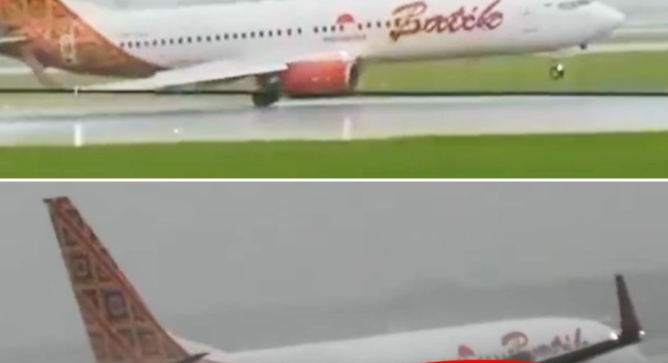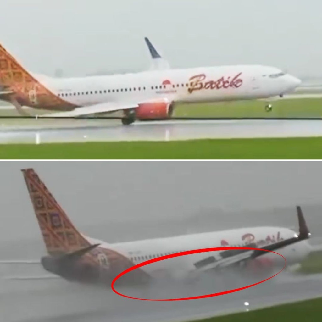 According to the reports, the flight shuddered on the runway due to bad weather. Heavy rain and strong winds forced the plane to tilt on one side, appearing as it was out of control. Moreover, one wing of the plane almost collided with the runway. The Flight PK-LDJ was operated by the Batik Airlines.
