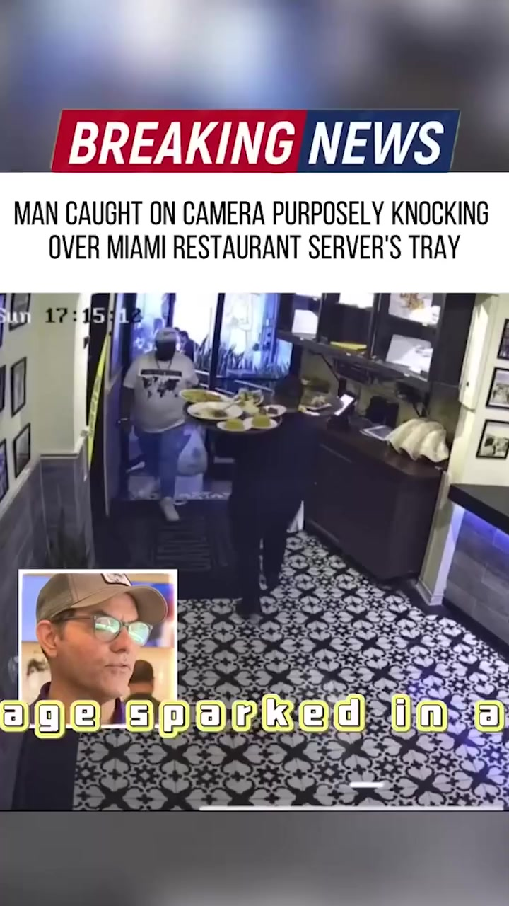 A Miami restaurant has become the center of a heated online firestorm after security footage captured a man deliberately knocking over a server’s fully loaded tray of food. The incident, caught on the restaurant’s surveillance camera, has sparked outrage across social media, with thousands demanding accountability for what many are calling “one of the most disrespectful acts ever caught on tape.”