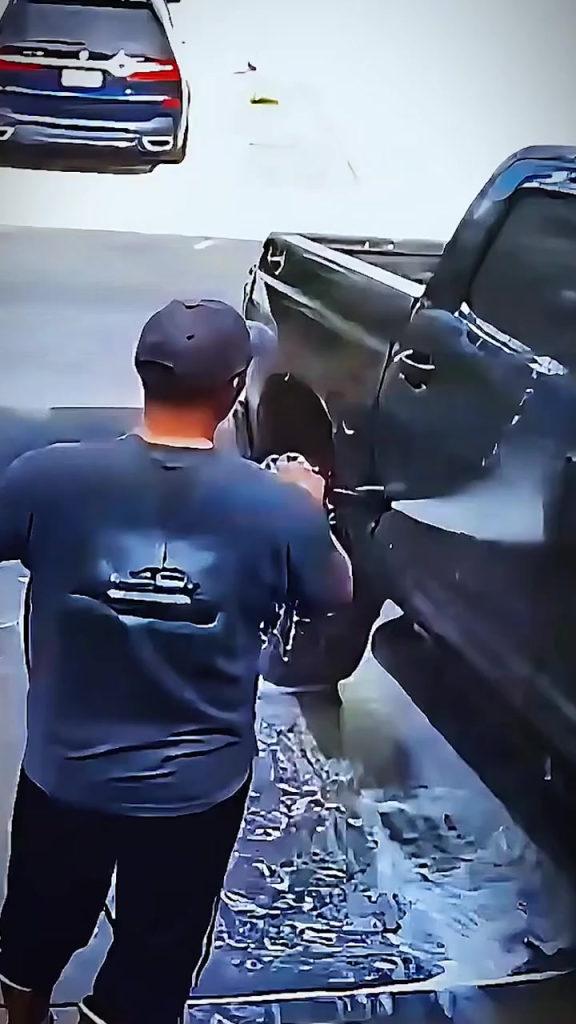 Security footage from what looks like an ordinary gas station has ignited intense debate online after capturing a split-second moment that quickly turned into something far more serious. At first glance, nothing seems unusual: a man stands beside a dark pickup truck, apparently refueling, while another person approaches from a short distance away. But what unfolds in the next moments has left viewers stunned.
