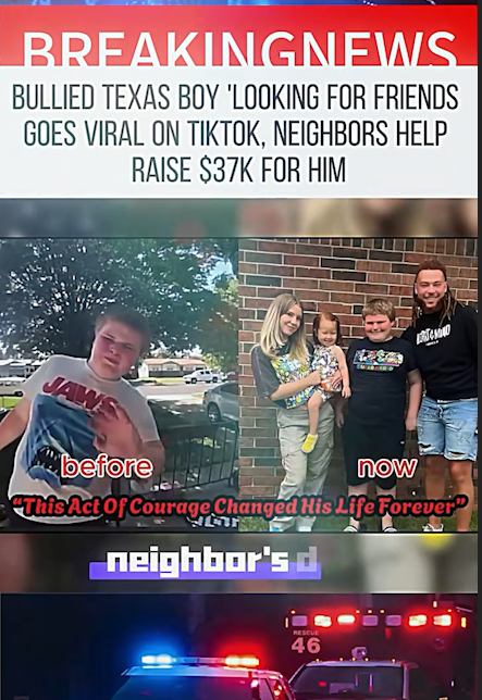 A Texas community has come together in a powerful and heart-touching way after a young boy, who tearfully admitted he was “just looking for friends,” went viral on TikTok. What began as a simple, emotional video quickly turned into a nationwide moment of unity, kindness, and overwhelming support — ultimately raising an incredible $37,000 to help lift his spirits and change his life for the better.