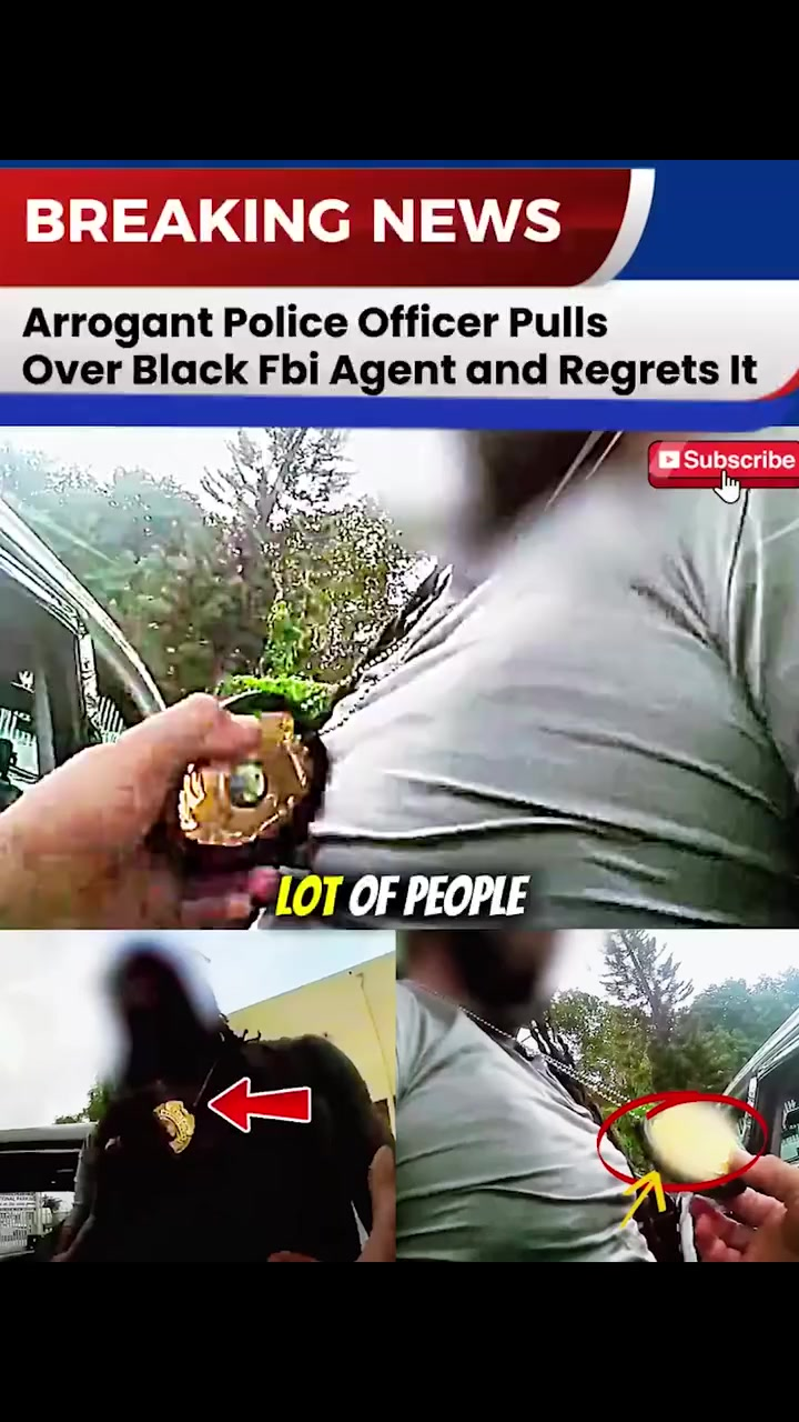 As the driver reaches into his pocket, he pulls out a badge—an official FBI credential. The moment the officer sees the golden emblem, his entire posture shifts. His voice softens, his tone becomes respectful, and the stern attitude disappears instantly. Viewers described it as the exact second the officer realized he had seriously misjudged the situation.