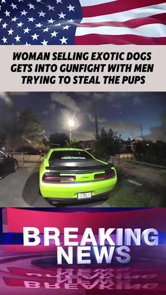 In the video, the woman approaches the meeting spot when a car pulls up beside her. Instead of greeting her or asking about the dogs, the men inside the vehicle allegedly attempted to intimidate her, demanding the puppies. The confrontation escalated almost instantly. The footage shows her backing away as one of the men exits the vehicle, and moments later, the situation erupts into gunfire.