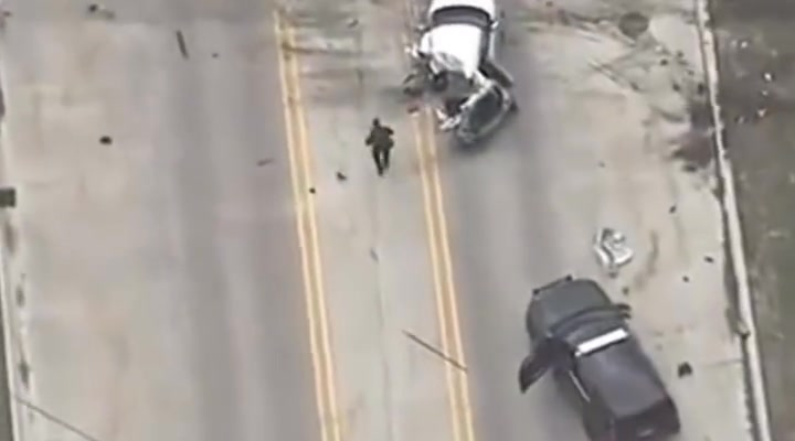 The video later sparked discussion about the ripple effect such chases have across an entire community. The turning point came when the sedan attempted to cut through a construction zone. The driver misjudged the spacing between barricades and clipped a temporary sign, slowing the vehicle dramatically. Officers seized the opportunity, tightening their formation, but without making any contact or forcing additional danger.