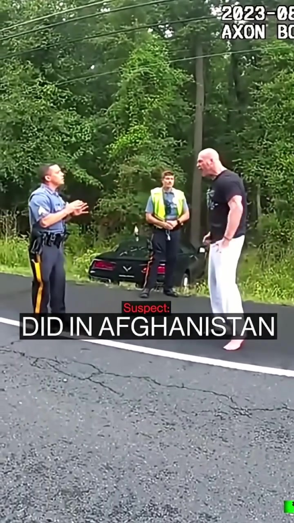 A dramatic confrontation on a quiet wooded highway has gone viral after bodycam footage captured a towering, visibly agitated man squaring up against state troopers during what should have been a routine roadside encounter. The man, towering over the officers by several inches and clearly tense, suddenly blurts out the startling phrase: “Two and a half years!” — a moment that has viewers scrambling to understand what he meant and why the situation escalated so quickly.