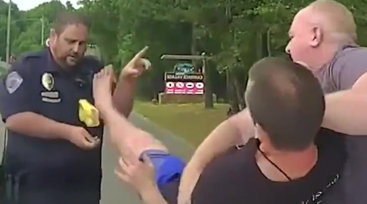 But just when the situation seems to be reaching a difficult point, the police chief arrives and steps in — and what happens next has taken the internet by surprise.