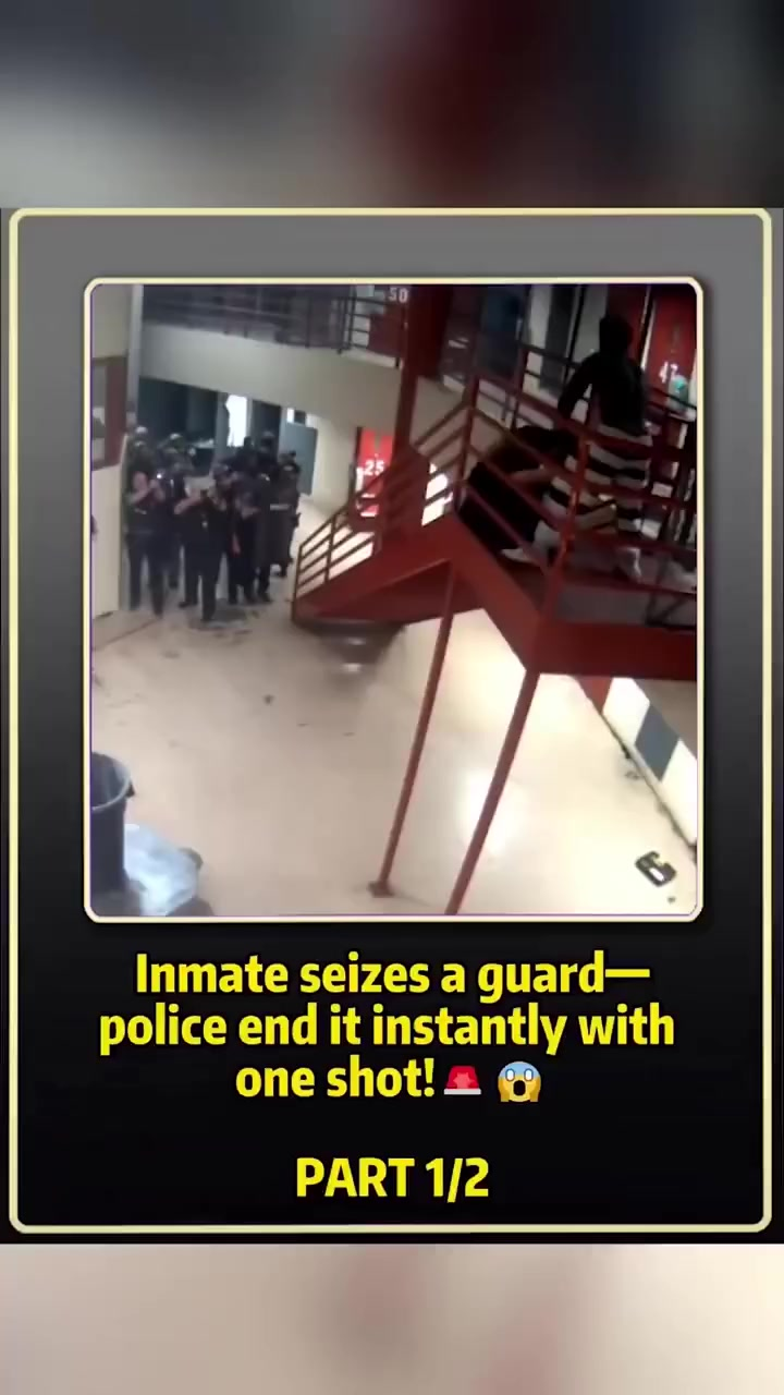 Witnesses online describe the moment as chaotic and terrifying. The inmate is seen grabbing the guard and pulling them close, creating a human shield scenario. At that point, officers responding have only seconds to decide how to act. Viewers say the tension is almost unbearable, even through a short clip.