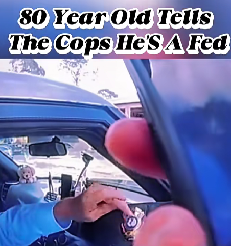 The incident began when officers pulled over the elderly driver for running a stop sign in a quiet suburban neighborhood. Bodycam footage shows the man calmly rolling down his window and, before the officer can even speak, saying, “You can’t ticket me, son — I’m a federal man.” He then reached into his pocket and produced what looked like a badge.
